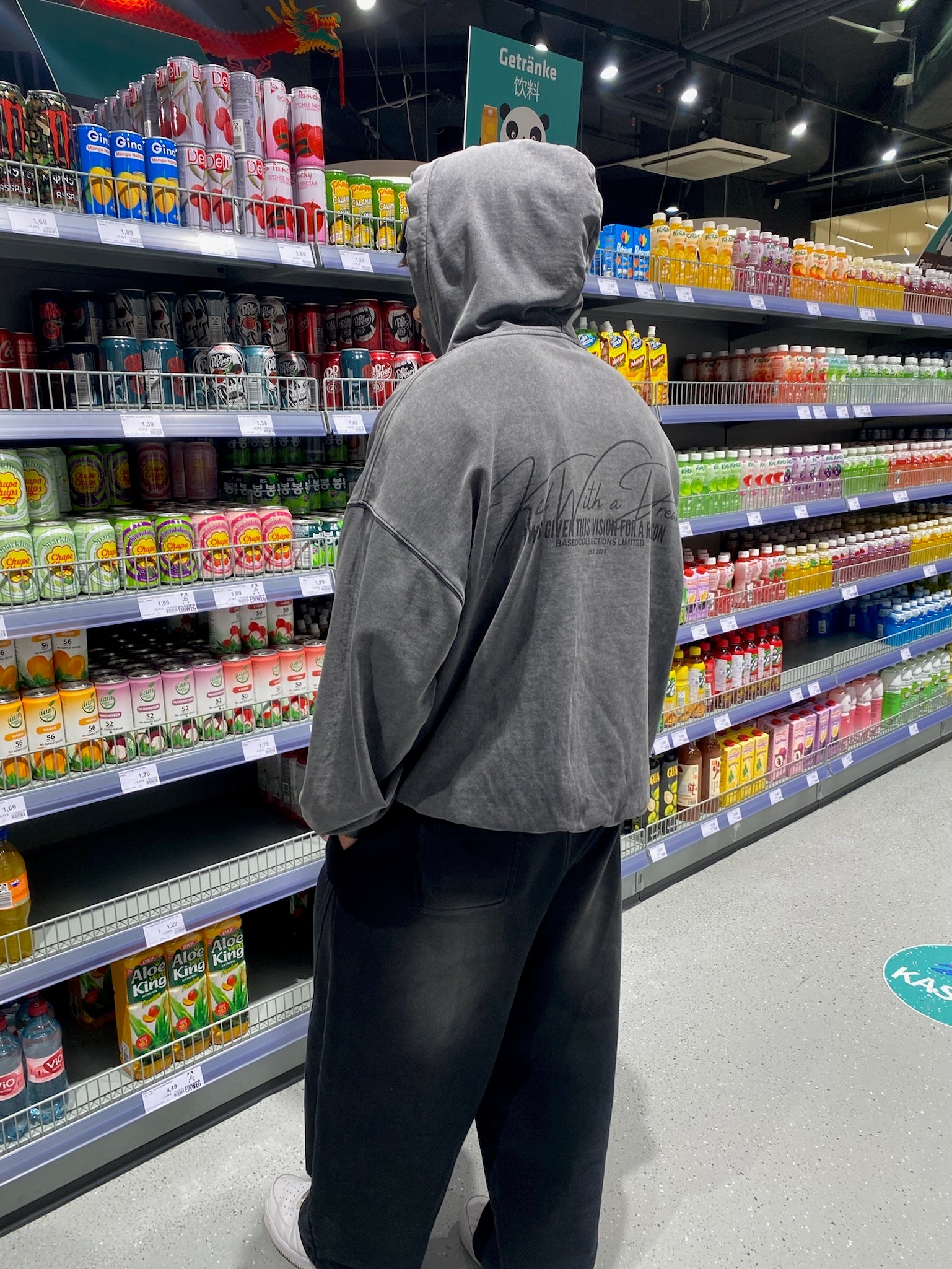 I love the distress finish on the cuffs and at the bottom of the hoodie, makes it very unique. As well as the oversize fit is just the way that i like it. Definitely recommend.